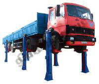 Автомобильный подъемник стационарный для автобусов-сцепок, г/п 24 т , 6 стоек с редукторным приводом, подхват за площадки. Подъемник имеет шесть стоек. Рабочие гайки из полиамида повышенной износостойкости. Подъемник оснащен концевыми выключателями нажимного действия, ограничивающими ход каретки вверх и вниз и многоуровневой системой безопасности. По отдельному заказу комплектуется установочными рамами.