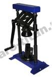 Стенд С-1 состоит из следующих основных частей: основания, упора, направляющей, колонок, втулки, домкрата. Основание и упор соединены между собой колонками, по которым при помощи домкрата передвигается направляющая, с установленной на ней прижимной втулкой. Вращением рукоятки домкрата втулка подводится к крышке энергоаккумулятора и усилием домкрата сжимает силовую пружину, находящуюся под поршнем. Стенд комплектуется съемником для выпрессовки толкателя. Он состоит из стакана, шпильки, гайки, хомута. Для выпрессовки толкателя из поршня шпилька заворачивается в толкатель, а при отсутствии резьбы закрепляется на толкателе при помощи хомута. На шпильку надевается стакан и при помощи гайки происходит выпрессовка толкателя.