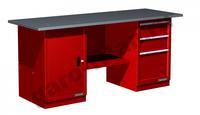 Верстак двухтумбовый модели 01.203 (тумба с дверцей, тумба с 3 ящиками) предназначен для организации рабочих мест в условиях автосервиса, мастерских, окрашен глянцевым порошковым покрытием, обеспечивающий прекрасный эстетичный внешний вид изделия. Цветовая гамма изделия поставляется в различных вариантах: красный, синий, зеленый, серый и т.д. Для удобства транспортировки верстак поставляется в разобранном виде.
