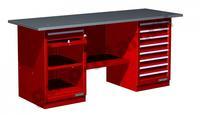 Верстак двухтумбовый модели 01.218 (Верстак с двумя тумбами, тумба с дверцей и ящиком, тумба с 8 ящиками) предназначен для организации рабочих мест в условиях автосервиса, мастерских, окрашен глянцевым порошковым покрытием, обеспечивающий прекрасный эстетичный внешний вид изделия. Цветовая гамма изделия поставляется в различных вариантах: красный, синий, зеленый, серый и т.д. Для удобства транспортировки верстак поставляется в разобранном виде.