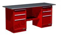 Верстак двухтумбовый модели 01.233 (верстак с двумя тумбами, две тумбы с 3 ящиками) предназначен для организации рабочих мест в условиях автосервиса, мастерских, окрашен глянцевым порошковым покрытием, обеспечивающий прекрасный эстетичный внешний вид изделия. Цветовая гамма изделия поставляется в различных вариантах: красный, синий, зеленый, серый и т.д. Для удобства транспортировки верстак поставляется в разобранном виде.