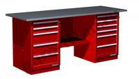 Верстак двухтумбовый модели 01.256 (верстак с двумя тумбами, тумба с 5 ящиками, тумба с 6 ящиками) предназначен для организации рабочих мест в условиях автосервиса, мастерских, окрашен глянцевым порошковым покрытием, обеспечивающий прекрасный эстетичный внешний вид изделия. Цветовая гамма изделия поставляется в различных вариантах: красный, синий, зеленый, серый и т.д. Для удобства транспортировки верстак поставляется в разобранном виде.