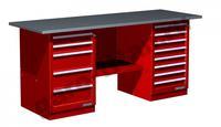 Верстак двухтумбовый модели 01.258 (верстак с двумя тумбами, тумба с 5 ящиками, тумба с 8 ящиками) предназначен для организации рабочих мест в условиях автосервиса, мастерских, окрашен глянцевым порошковым покрытием, обеспечивающий прекрасный эстетичный внешний вид изделия. Цветовая гамма изделия поставляется в различных вариантах: красный, синий, зеленый, серый и т.д. Для удобства транспортировки верстак поставляется в разобранном виде.