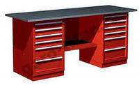 Верстак двухтумбовый модели 01.266 (верстак с двумя тумбами, две тумбы с 6 ящиками) предназначен для организации рабочих мест в условиях автосервиса, мастерских, окрашен глянцевым порошковым покрытием, обеспечивающий прекрасный эстетичный внешний вид изделия. Цветовая гамма изделия поставляется в различных вариантах: красный, синий, зеленый, серый и т.д. Для удобства транспортировки верстак поставляется в разобранном виде.