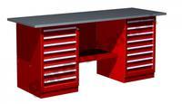 Верстак двухтумбовый модели 01.288 (верстак с двумя тумбами, две тумбы с 8 ящиками) предназначен для организации рабочих мест в условиях автосервиса, мастерских, окрашен глянцевым порошковым покрытием, обеспечивающим прекрасный эстетичный внешний вид изделия. Цветовая гамма изделия поставляется в различных вариантах: красный, синий, зеленый, серый и т.д. Для удобства транспортировки верстак поставляется в разобранном виде.