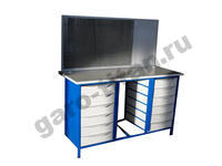 Верстак двухтумбовый модели ШП 17-05 (верстак с двумя тумбами, две тумбы с 6 ящиками + защитный экран) предназначен для организации рабочих мест в условиях автосервиса, мастерских. Габаритные размеры: 1400х600х855 мм., масса 78 кг.
