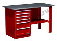 Верстак однотумбовый модели 01.106 (1 тумба, тумба с 6 ящиками) предназначен для организации рабочих мест в условиях автосервиса, мастерских, окрашен глянцевым порошковым покрытием, обеспечивающий прекрасный эстетичный внешний вид изделия. Цветовая гамма изделия поставляется в различных вариантах: красный, синий, зеленый, серый и т.д. Для удобства транспортировки верстак поставляется в разобранном виде.