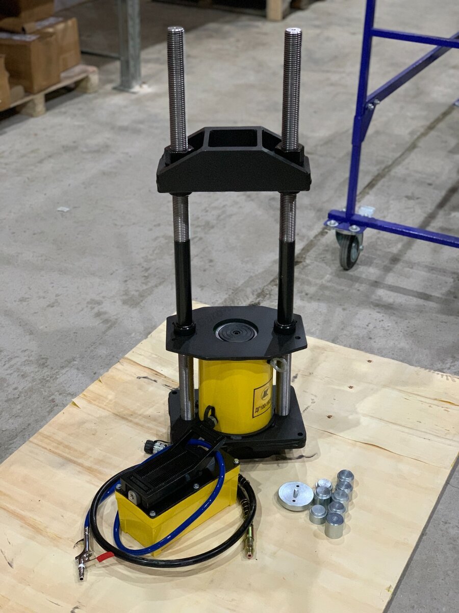 Использование данного оборудования позволяет, как выпрессовывать шкворень вышедший из строя, так и запрессовывать новый. Так же данный комплект можно использовать для выполнения любых других подобных операций, широко распространённых при ремонте, как грузовых, так и легковых автомобилей.