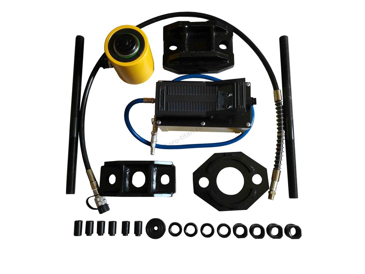 Использование данного оборудования позволяет, как выпрессовывать шкворень вышедший из строя, так и запрессовывать новый. Так же данный комплект можно использовать для выполнения любых других подобных операций, широко распространённых при ремонте, как грузовых, так и легковых автомобилей.