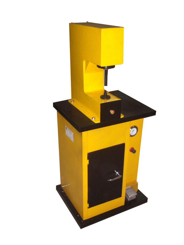 В шток вкручивается пуансон определенного диаметра, регулируется по высоте опускание контргайкой.